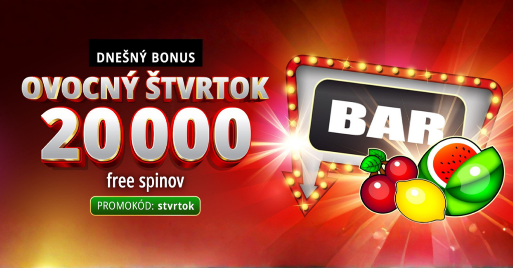Získaj bonus 20 free spinov ešte dnes. Ako získaš dnešný bonus? Vlož jednorazovo 10 € s promokódom: stvrtok Získaš: 20 free spinov (0,10 €) Spiny